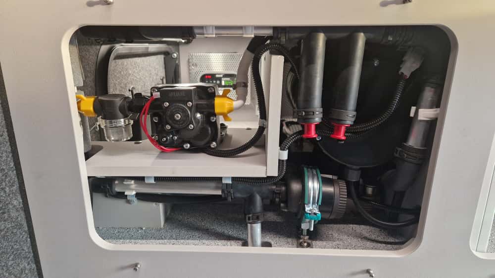 Pakiet podwozia DMC 5800 kg, skrzynia biegów ZF, mechanizm różnicowy, klimatyzacja, felgi aluminiowe, przygotowanie pod hak holowniczy, wymiennik ciepła, dystanse kół