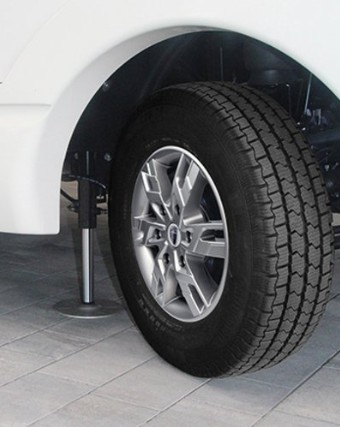 Aluminiowe felgi MORELO na przedniej osi z poszerzonym rozstawem kół i stalowe felgi z kołpakami na tylnej osi