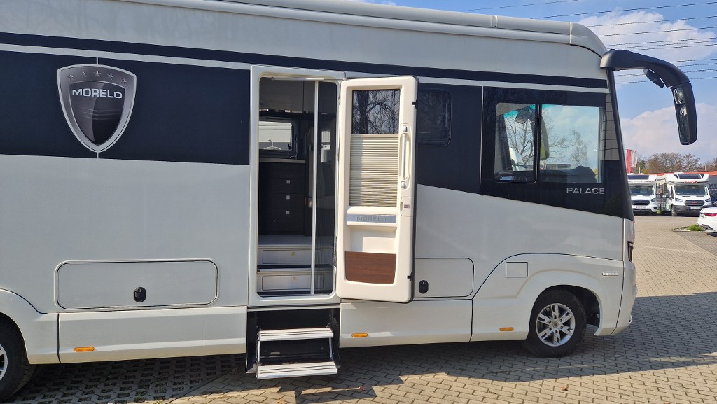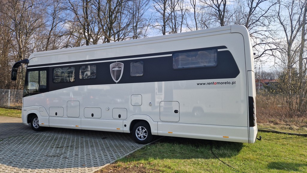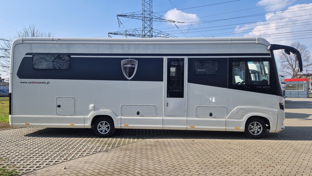 Morelo Palace to pojazd przeznaczony dla doświadczonych, a jednocześnie bardzo wymagających miłośników karawaningu. Długość wynosząca 9,54 metra, szerokość 2,4 m oraz wysokość 3,49 m sprawią, że poczujesz się w nim jak w domu. Pojazd zbudowany jest na 7,5 tonowym podwoziu marki Iveco. Źródło napędu to 4 cylindrowy silnik o pojemności 3 litra i mocy 207 KM połączony z 8 stopniową automatyczną skrzynią biegów. Napęd przenoszony jest na tylną oś.