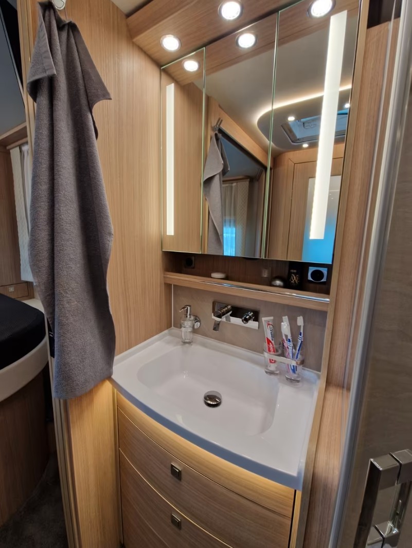 Pakiet elektryczny „Lithium Power” Akumulator litowo-żelazowo-fosforanowy 1 x 340 Ah (100% pojemności rozładowania = 340 Ah) Ładowarka/inwerter kombinowany o mocy 3000 W, wydajność ładowania do 120 A, z preselekcją napięcia sieciowego / kompensacją napięcia sieciowego (Power Share), w pełni automatyczna ochrona akumulatora najwyższej klasy, 10-calowy panel sterowania premium