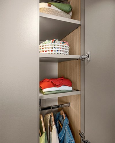 Prawdziwy cud przestrzeni do przechowywania. Czyż to nie wspaniałe uczucie, gdy wszystko, naprawdę wszystko, ma swoje miejsce? I to nie byle jak — wszystko jest łatwo dostępne i pod ręką. Zaczyna się od garażu na samochód osobowy z praktyczną wciągarką, a nowe klapy do przechowywania to dopiero początek możliwości.
