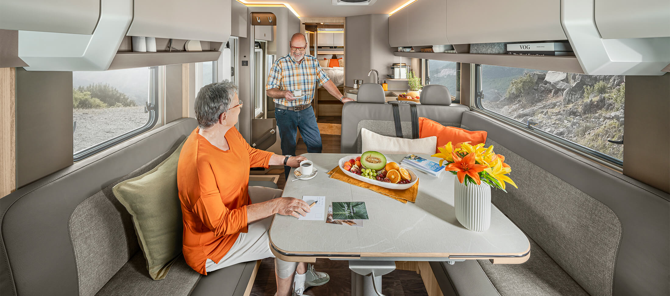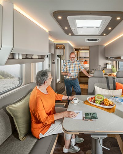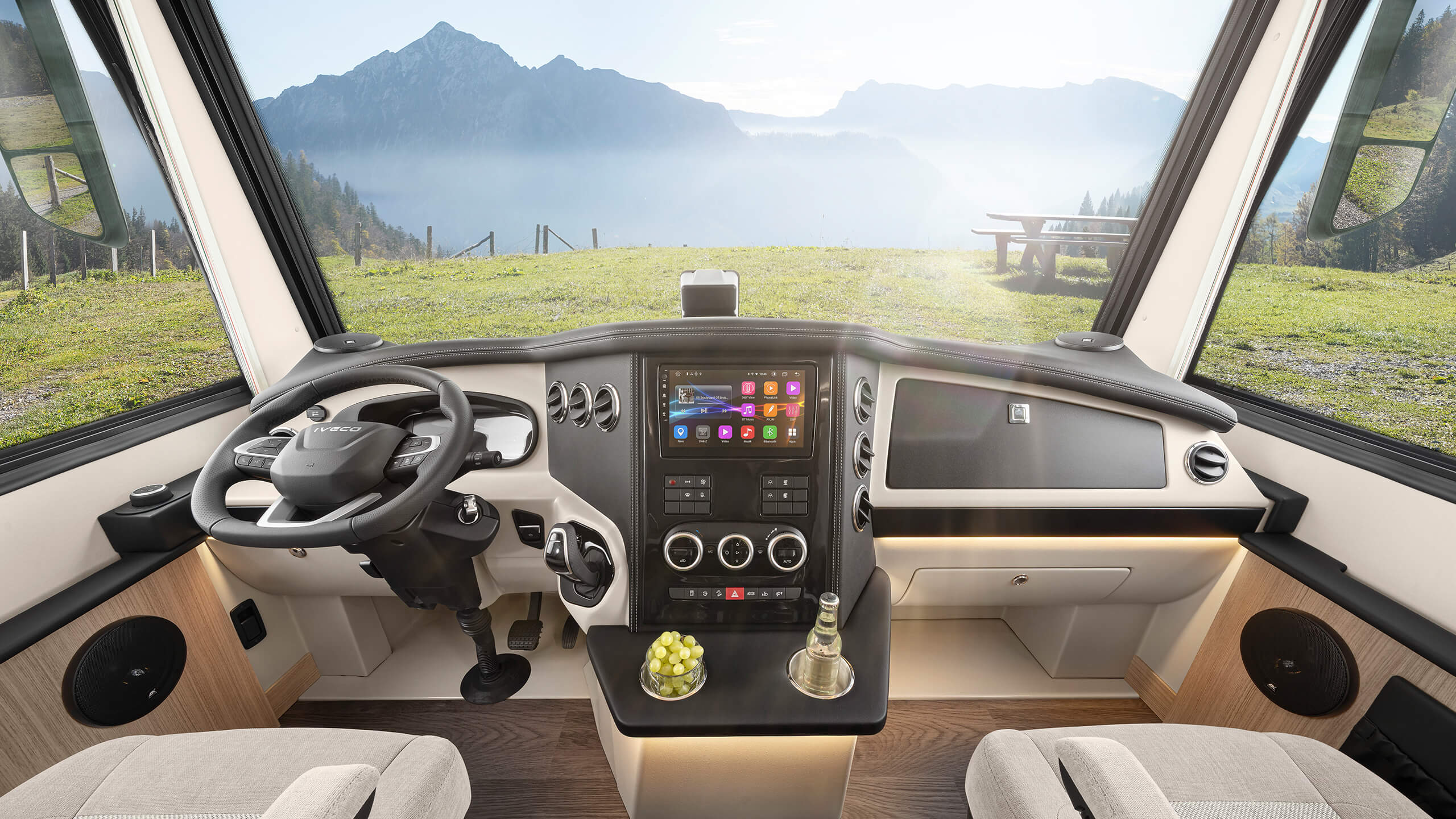 Ty prowadzisz – my dbamy o wszystko wokół. Zajmij więc miejsce w przedniej części strefy mieszkalnej, sięgnij po orzeźwiający napój z lodówki lub zerknij na nawigację (opcja). Kokpit? Oczywiście, ze wszystkim, co do niego należy — tylko w komfortowej, przytulnej formie.