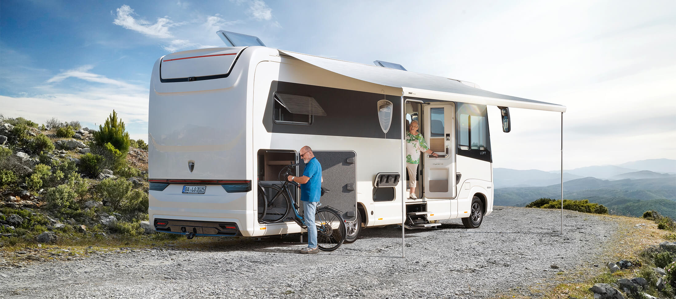 Zwykle patrzymy przed siebie, ale dzięki lusterkom inspirowanym autobusem w matowym, czarnym designie carbonowym, także widok do tyłu staje się czystą przyjemnością. Nowy LOFT prezentuje się dynamicznie i sportowo — z zakrzywioną szybą przednią, ciągłą tylną lampą i osłoną przeciwsłoneczną dzięki zintegrowanej markizie (opcja). Niezaprzeczalnie styl MORELO.